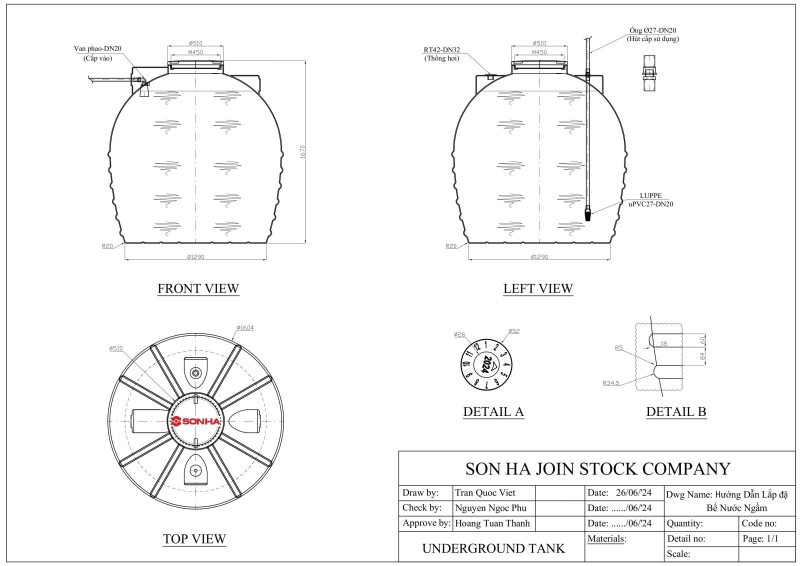 Bản vẽ hướng dẫn lắp đặt bể nước ngầm đứng Sơn Hà